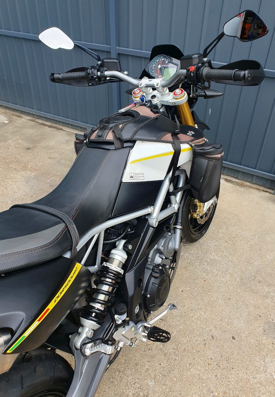 AKCIÓ DECEMBER 31.-IG! APRILIA DORSODURO 750 ABS 2016-08 havi 67 Kw 91 Le, 21.942 Km! 2 db Gyári kulcsával jó állapotú első-hátsó gumikkal, jó állapotú féktárcsákkal! ARROW sportkipufogó dob 180eFT FELÁRÉRT VIHETŐ! (kb. 400eFt az új ára)+ Gyári dob! Fém fékcső, kézvédő, tanktáska, Igazolható futásteljesítmény! ELADÓ 2.599.999.-FT (Csereár 2.799.999. -Ft)! Miért érdemes bennünket választani: - Cégünk megbízhatóságot és biztonságot kínál Önnek! - 1998 óta foglalkozunk motorkerékpár-kereskedelemmel, így garantált a szakértelem és a megbízhatóság - Motorjaink MAGYAR MŰSZAKIVAL rendelkeznek. - A RENDSZÁM kiváltása hivatali munkaidőben, legtöbbször NÉHÁNY ÓRÁN BELÜL megtörténik, teljes átírással a vásárló nevére. - Az átírás díja megegyezik egy magyar motoréval, ez a vevő költsége. - Külföldi motorok esetén a műszaki vizsga és regisztrációs díj benne van a kiírt árban. - Vásárláskor számlát kap, így anyagi és erkölcsi felelősséget vállalunk. - Motorjaink ellenőrzött és garantált háttérből származnak. - 100-140 db-os folyamatosan megújuló választék! - Futásteljesítményük és balesetmentes származásuk, minden esetben igazolható, melyet írásban garantálunk. - Ha Önhöz mégsem passzol a nálunk vásárolt motor, akár visszaszámoljuk egy másik motorkerékpárunkba. - A motorok megtekinthetők akár az esti órákban és hétvégén is, de minden esetben telefonos egyeztetés szükséges! - Motorkerékpárok HITELRE is megvásárolhatók, 30% önerőtől! - Teljeskörű ügyintézés, névre írás, választható friss szerviz és hosszú távú garancia. - Házhoz szállítás az ország bármely területére! - Bizományosi értékesítés. - Azonnali KÉSZPÉNZES felvásárlásás. - w w w. markamotor. hu Velünk jó úton jár!