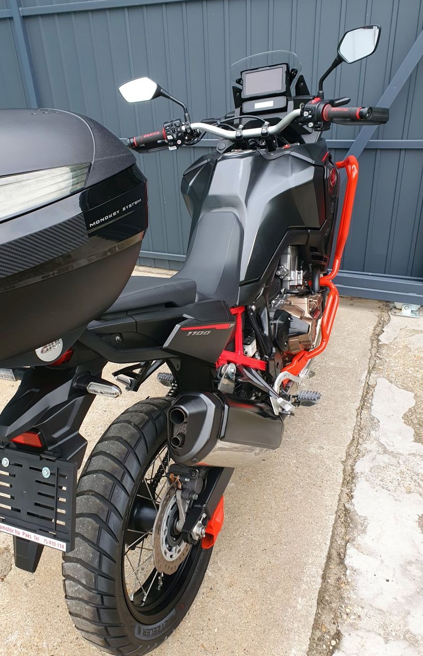 HONDA CRF 1100 L AFRICA TWIN DCT ABS 2019-09 havi 75 Kw 102 Le 14.403 Km! 2 db Gyári kulccsal jó állapotú első-hátsó gumikkal, jó állapotú féktárcsákkal-fékbetétekkel, DCT váltó, Bukókeret, GIVI hátsó túradoboz, LED világító berendezések, Motor üzemmód állítási lehetőség. Első tulajdonostó, Igazolható futásteljesítmény! ELADÓ 4.599.999.-FT (Csereár 4.799.999. -Ft)!