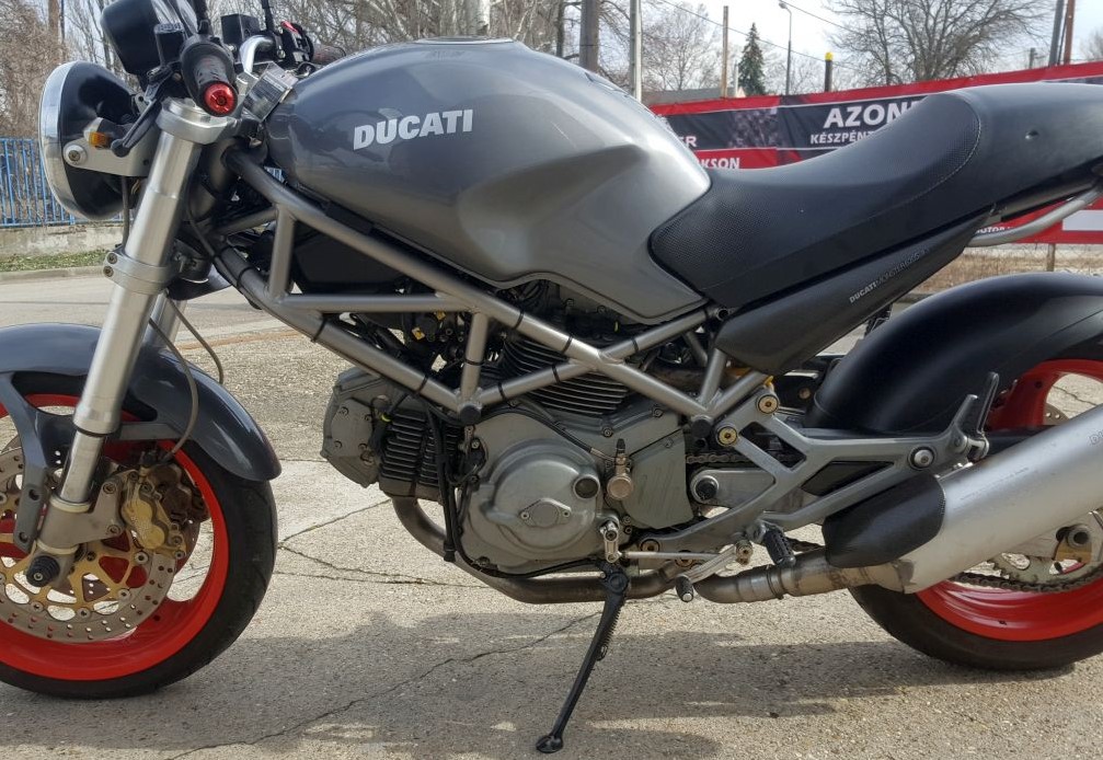 DUCATI MONSTER 620 i.e.2003-04 HAVI 44 KW 60 LE 34.009 KM!! 3 db Gyári kulcs és kódkártya!! Jó állapotú első-és hátsó gumi, jó állapotú féktárcsákkal ,és fékbetétekkel! FÉM FÉKCSÖVEK, SZÍNRE FÚJT ÜLÉSPÚP, Karbon mintás idomok visszapillantó tükrök !! Rendezett külföldi okmányokkal, megkímélt szép állapotban ELADÓ 1.049.999.-FT (Csereár 1.249.999. -Ft)!